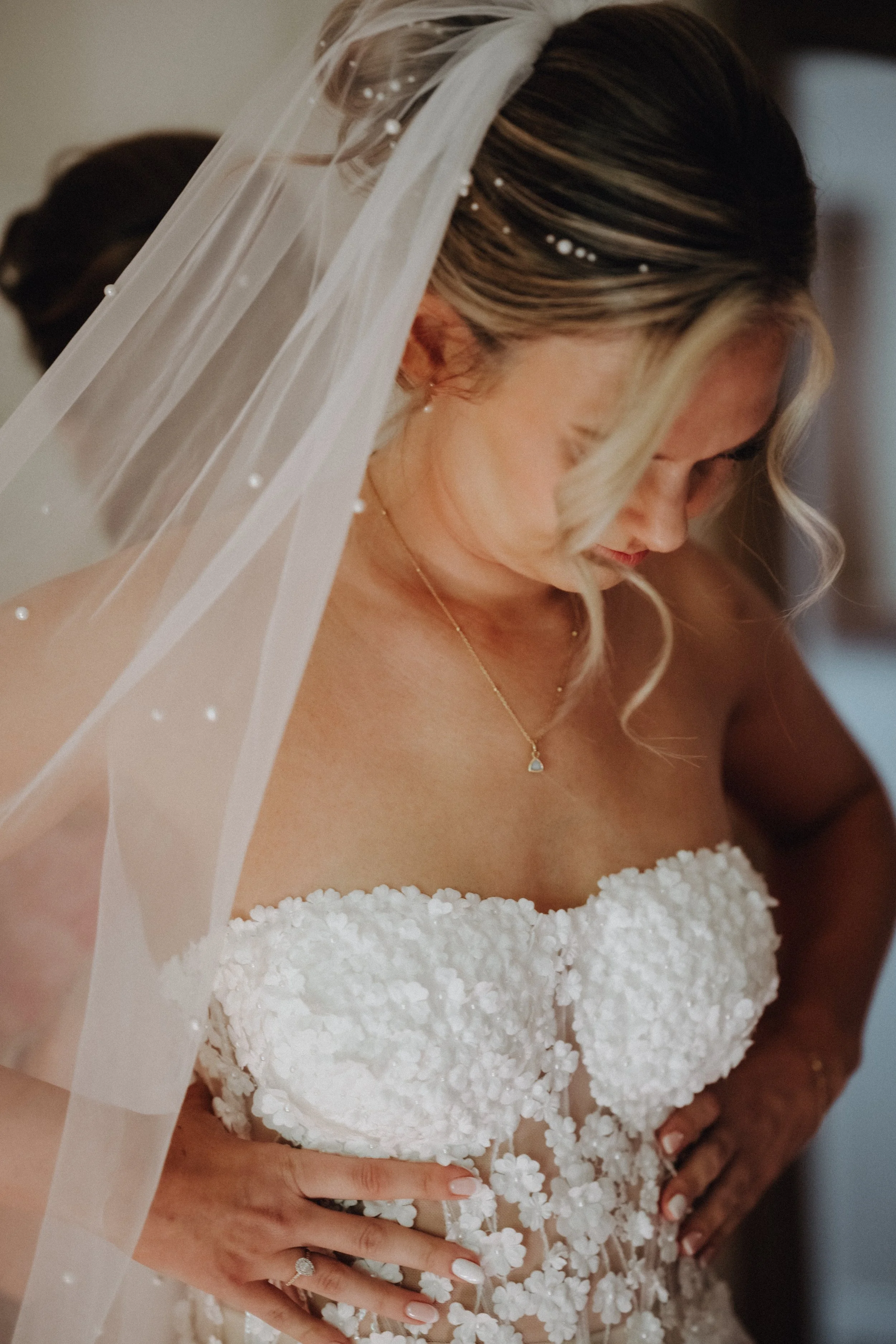 I was pretty confident that I wanted strapless and a floaty skirt but the floral detail was a surprise and perfect for our venue - the ceremony was outside in a walled garden.