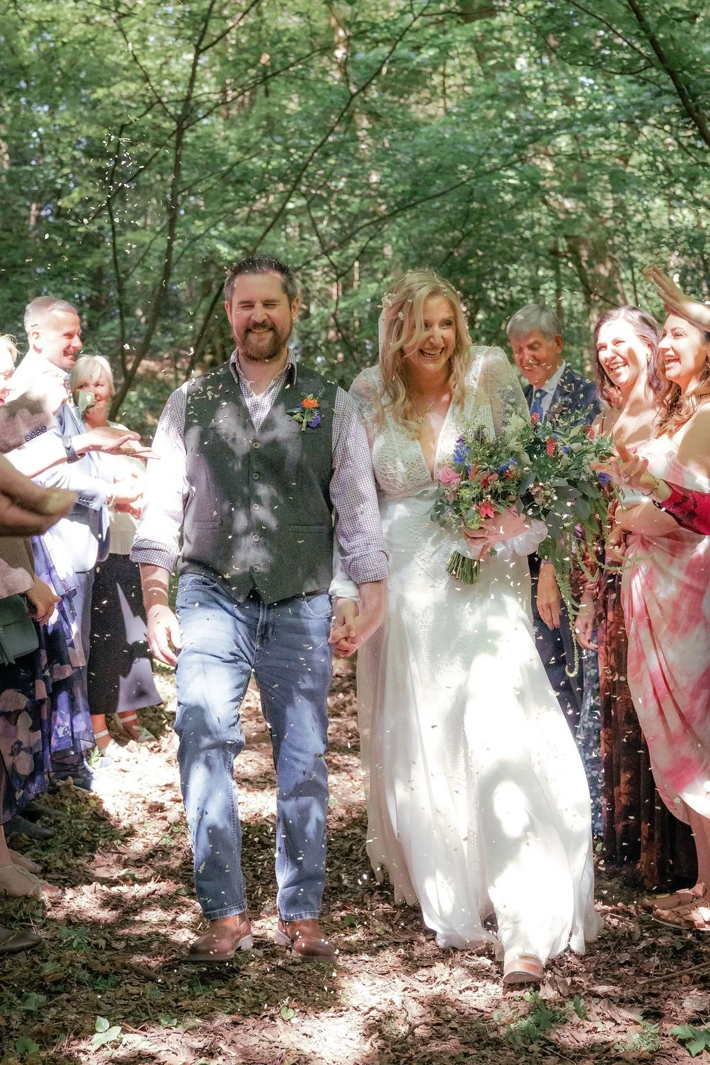 We wanted a wedding that was relaxed and full of our favourite things and people. We love going for walks in nature and my husband grew up a farmer so rustic and a bit bohemian was our overall theme. We were always planning a forest wedding and my now husband was thrilled to do away with the traditional wedding clothes and wear Jeans and his Dealer Boots so that set our theme!
